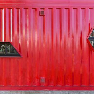 他們自己最滿意的是紅色貨櫃與黑色壁面跟地板水泥面的搭配。佔地約60坪,完成於2014年,造價換算新台幣約252萬元。