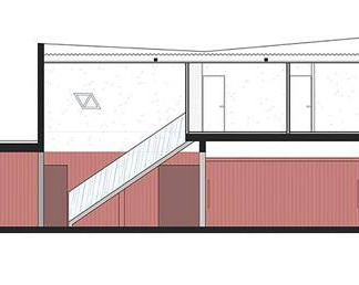 在一樓L型的部分使用了兩支貨櫃,作為客廳、廚房、儲藏室、洗衣房、浴室、車庫、辦公室、倉庫等用途。而上層則是使用磚造結構,構成臥室、浴室私人空間用途。通常貨櫃複合式建築應該不會在貨櫃上面疊磚造,所以其實細看後,磚造部分有從一樓延伸到上層做支撐,不是單純用貨櫃來支撐上層的量體。因為那肯定會『梆』掉。一支貨櫃的頂版頂多只能乘載300公斤左右的重量。